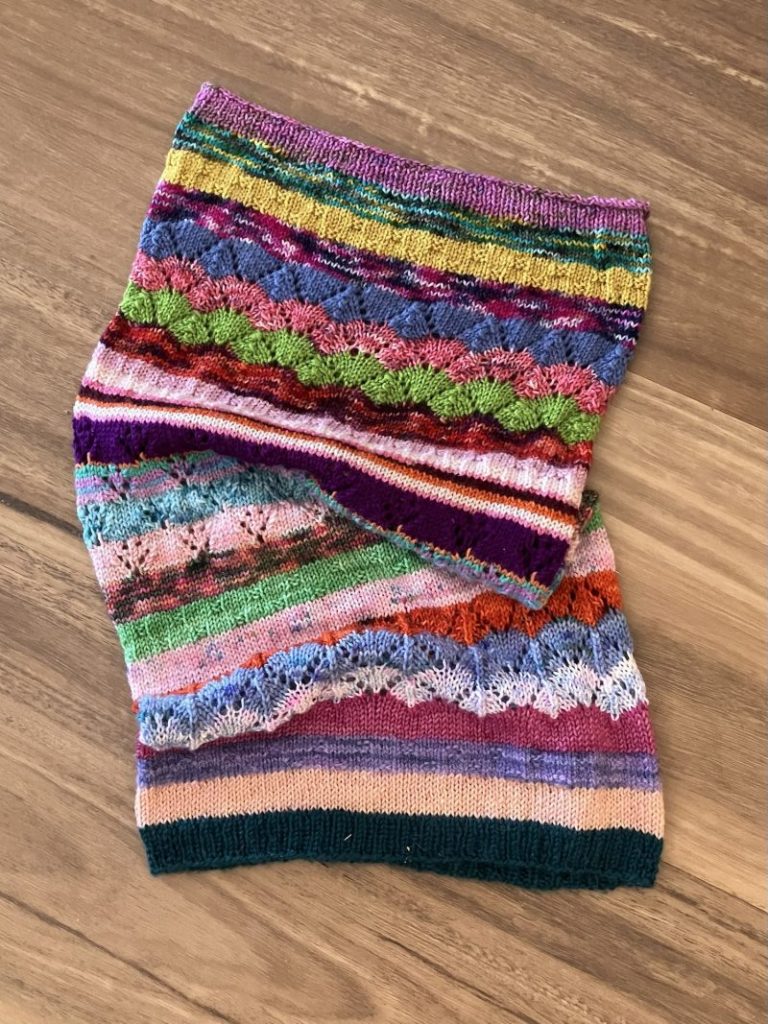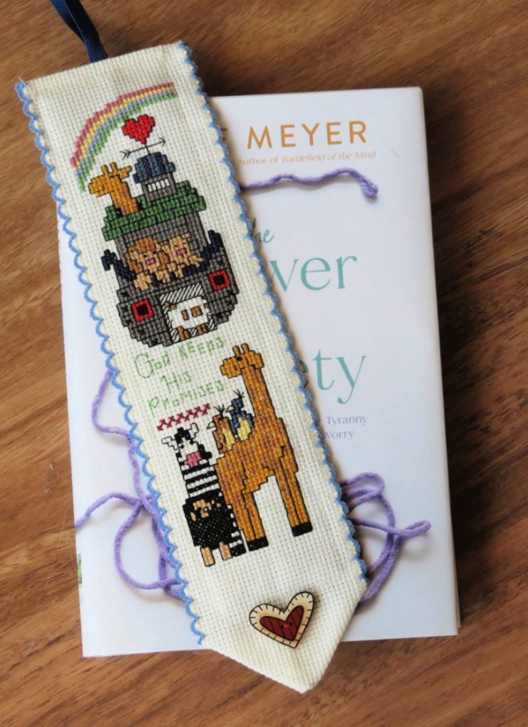 I haven’t been idle since we last talked. I’ve been reading, knitting, cross-stitching, and crocheting. Looking forward to sharing with you.